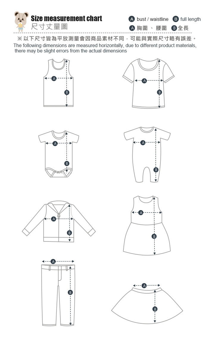 由於每位寶寶的身高、體型各有差異,建議請參考尺寸表查詢購買。